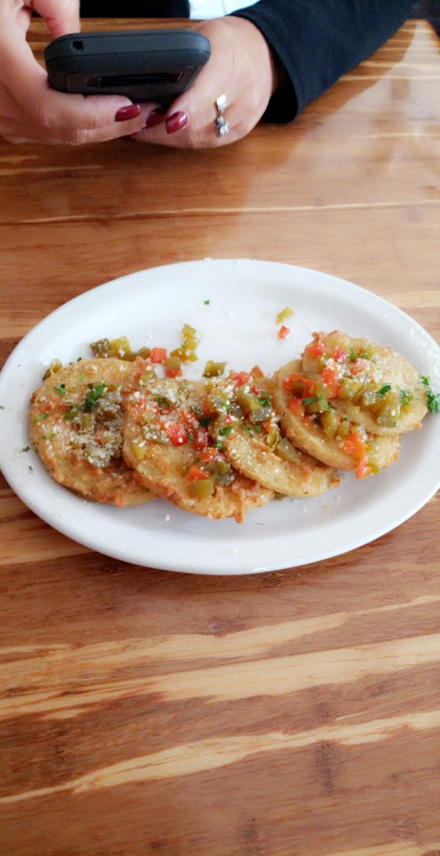 One of the highlights of Jebby's On 17 is its mouthwatering menu. If you’re a fan of Southern cuisine, you’re in for a treat! Start with their famous Shrimp and Grits, a dish that’s rich in flavor with perfectly cooked shrimp and creamy, buttery grits. Another must-try is their Fried Green Tomatoes-crispy on the outside, tender on the inside, and served with a zesty dipping sauce. For those craving a crunchy bite, the Onion Rings at Jebby’s are a fan favorite, crispy and golden brown, the perfect snack or side.